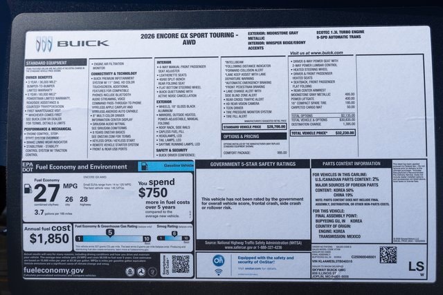 2026 Buick Encore GX Sport Touring 4D Sport Utility26/28 City/Highway MPGECOTEC 1.3L Turbo 9-Speed AutomaticAWDMoonstone Gray MetallicHere at Skyway Buick-GMC we pride ourselves in a transparent car buying experience. We give YOU the customer the best price upfront. We provide every customer with a Carfax and repair order upon request. Come experience the right way to purchase your next car! Give us a call today to schedule a test drive! Skyway Buick GMC 808 Illinois Avenue Joplin MO, 64801.Dealer will not be held responsible for discrepancies in descriptions or pricing.
