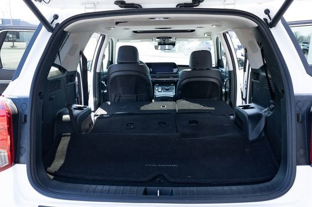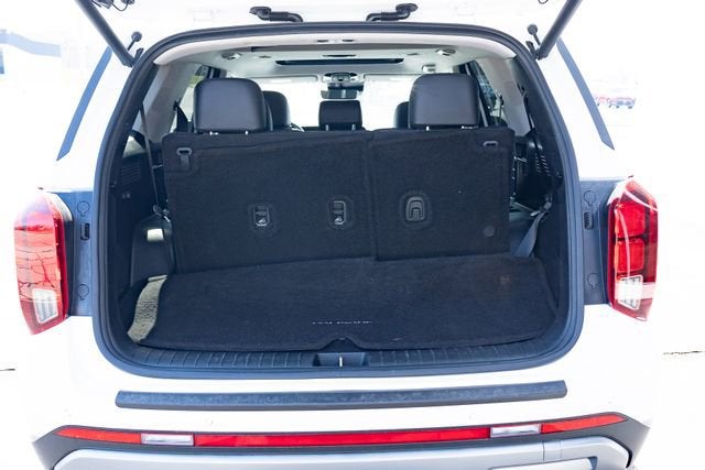 CARFAX One-Owner. SEL Palisade SEL, 4D Sport Utility, V6, 8-Speed Automatic with SHIFTRONIC, AWD, Hyper White, Black Artificial Leather, 3.648 Axle Ratio, 3rd row seats: split-bench, 4-Wheel Disc Brakes, 6 Speakers, 8-Passenger Bench Seating, 8-Passenger Seating, ABS brakes, Air Conditioning, Alloy wheels, AM/FM radio: SiriusXM, Apple CarPlay & Android Auto, Auto High-beam Headlights, Auto-dimming door mirrors, Auto-dimming Rear-View mirror, Automatic temperature control, Brake assist, Bumper Applique, Bumpers: body-color, Cargo Cover/Screen, Cargo Net, Cargo Tray, Carpeted Floor Mats, Delay-off headlights, Driver door bin, Driver vanity mirror, Dual front impact airbags, Dual front side impact airbags, Electronic Stability Control, Emergency communication system, Exterior Parking Camera Rear, First Aid Kit, Four wheel independent suspension, Front anti-roll bar, Front Bucket Seats, Front Center Armrest, Front dual zone A/C, Front reading lights, Fully automatic headlights, H-Tex Leatherette Seat Trim, Heated door mirrors, Heated Front Bucket Seats, Heated front seats, Illuminated entry, Knee airbag, Low tire pressure warning, Mudguards, Navigation System, Occupant sensing airbag, Option Group 03, Outside temperature display, Overhead airbag, Overhead console, Panic alarm, Passenger door bin, Passenger vanity mirror, Power door mirrors, Power driver seat, Power Liftgate, Power passenger seat, Power steering, Power windows, Radio data system, Radio: AM/FM/MP3 Audio System, Rear air conditioning, Rear anti-roll bar, Rear audio controls, Rear reading lights, Rear side impact airbag, Rear window defroster, Rear window wiper, Reclining 3rd row seat, Remote keyless entry, Security system, Speed control, Speed-sensing steering, Split folding rear seat, Spoiler, Steering wheel mounted audio controls, Tachometer, Telescoping steering wheel, Tilt steering wheel, Traction control, Trip computer, Turn signal indicator mirrors, Variably intermittent wipers, Wheels: 18 x 7.5J Painted Finish Alloy. V6 AWD