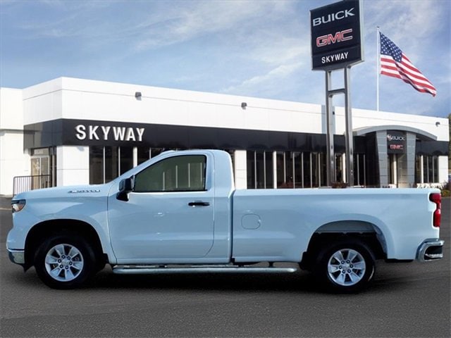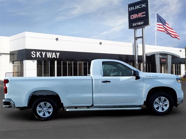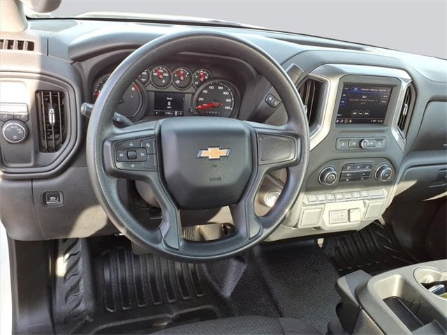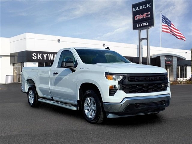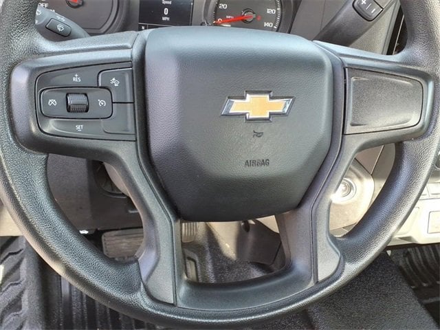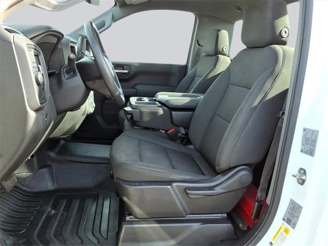 CARFAX One-Owner. WT Silverado 1500 WT, 2D Standard Cab, EcoTec3 5.3L V8, 10-Speed Automatic, RWD, Summit White, Black Cloth, 170 Amp Alternator, 2 Speakers, 2-Speaker Audio System, 220 Amp Alternator, 3.42 Rear Axle Ratio, 3.5 Monochromatic Display Driver Info Center, 4-Wheel Disc Brakes, 40/20/40 Front Split Bench Seat, ABS brakes, Air Conditioning, Auto High-beam Headlights, Automatic Emergency Braking, Auxiliary External Transmission Oil Cooler, Black (Semi-Gloss) Front Bumper, Black (Semi-Gloss) Rear Bumper, Bluetooth® For Phone, Brake assist, Chevrolet Connected Access Capable, Compass, Delay-off headlights, Driver door bin, Dual front impact airbags, Dual front side impact airbags, Electrical Steering Column Lock, Electronic Cruise Control, Electronic Stability Control, External Engine Oil Cooler, EZ Lift Power Lock & Release Tailgate, Following Distance Indicator, Forward Collision Alert, Front anti-roll bar, Front Center Armrest w/Storage, Front Chrome Bumper, Front Frame-Mounted Black Recovery Hooks, Front Pedestrian Braking, Front reading lights, Front wheel independent suspension, Fully automatic headlights, HD Rear Vision Camera, Heated door mirrors, Heated Power-Adjustable Outside Mirrors, Illuminated entry, Inside Rear-View Mirror w/Tilt, IntelliBeam Automatic High Beam On/Off, Lane Keep Assist w/Lane Departure Warning, Locking Tailgate, Low tire pressure warning, Manual Tailgate Function w/No EZ Lift, Manual Tilt Wheel Steering Column, Occupant sensing airbag, OnStar & Chevrolet Connected Services Capable, Outside temperature display, Overhead airbag, Overhead console, Panic alarm, Passenger door bin, Passenger vanity mirror, Power door mirrors, Power Front Windows w/Driver Express Up/Down, Power Front Windows w/Passenger Express Down, Power steering, Power windows, Preferred Equipment Group 1WT, Premium audio system: Chevrolet Infotainment 3, Radio data system, Radio: Chevrolet Infotainment 3 System, Rear Chrome Bumper, Rear reading lights, Rear step bumper, Remote Keyless Entry, Remote keyless entry, Rubberized-Vinyl Floor Covering, SiriusXM Delete, Solar Absorbing Tinted Glass, Speed-sensing steering, Standard Suspension Package, Standard Tailgate, Tachometer, Tilt steering wheel, Traction control, Trip computer, Variably intermittent wipers, Vinyl Seat Trim, Voltmeter, Wheels: 17 x 8 Bright Silver Painted Aluminum, Wheels: 17 x 8 Ultra Silver Painted Steel, Wi-Fi Hot Spot Capable. EcoTec3 5.3L V8 RWD