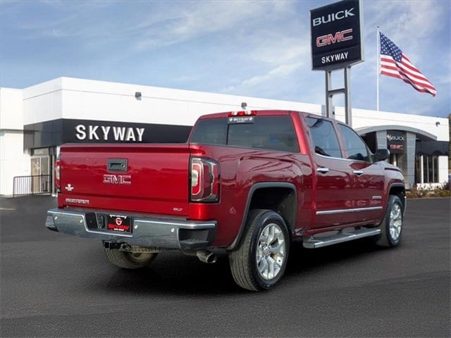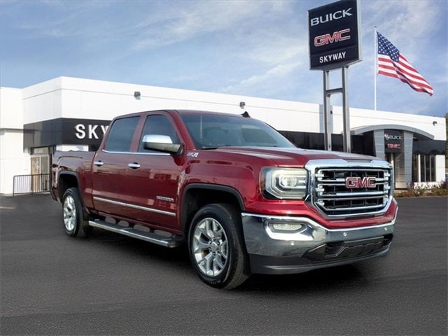 CARFAX One-Owner. SLT Sierra 1500 SLT, 4D Crew Cab, EcoTec3 5.3L V8, 8-Speed Automatic with Overdrive, 4WD, Red Quartz Tintcoat, Jet Black Leather, 10-Way Power Driver's Seat Adjuster, 110-Volt AC Power Outlet, 150 Amp Alternator, 1st & 2nd Row Color-Keyed Carpeted Floor Mats, 2-Speed Active Electronic AutoTrac Transfer Case, 20 x 9 Chrome Clad Aluminum Wheels, 20 x 9 Polished Aluminum Wheels, 3.42 Rear Axle Ratio, 4-Wheel Disc Brakes, 4.2 Diagonal Color Display Driver Info Center, 40/20/40 Front Split Bench Seat, 6 Speakers, 6-Speaker Audio System, 6 Rectangular Chromed Tubular Assist Steps, ABS brakes, Adjustable pedals, Air Conditioning, Alloy wheels, AM/FM radio: SiriusXM, Auto-dimming door mirrors, Auto-Dimming Inside Rear-View Mirror, Auto-dimming Rear-View mirror, Automatic temperature control, Auxiliary External Transmission Oil Cooler, Bodyside moldings, Bose Speaker System, Brake assist, Bumpers: chrome, CD player, Chrome Bodyside Moldings, Chrome Door Handles, Chrome Mirror Caps, Color-Keyed Carpeting, Compass, Deep-Tinted Glass, Delay-off headlights, Driver & Front Passenger Illuminated Vanity Mirrors, Driver door bin, Driver vanity mirror, Dual front impact airbags, Dual front side impact airbags, Dual-Zone Automatic Climate Control, Electric Rear-Window Defogger, Electronic Stability Control, Enhanced Driver Alert Package, Exterior Parking Camera Rear, EZ Lift & Lower Tailgate, Floor Mounted Console, Forward Collision Alert, Front anti-roll bar, Front Center Armrest w/Storage, Front dual zone A/C, Front fog lights, Front Frame-Mounted Black Recovery Hooks, Front Full Feature Power Reclining Bucket Seats, Front reading lights, Front wheel independent suspension, Fully automatic headlights, Garage door transmitter, GMC 4G LTE, GMC Connected Access, HD Radio, Heated & Ventilated Front Bucket Seats, Heated door mirrors, Heated Driver & Front Passenger Seats, Heated front seats, Heavy Duty Suspension, Heavy-Duty Rear Locking Differential, High-Intensity Discharge Headlights, High-Performance LED Headlamps, Hill Descent Control, Illuminated entry, Integrated Trailer Brake Controller, IntelliBeam Automatic High Beam On/Off Headlight, Lane Keep Assist, Leather Appointed Seat Trim, Leather Wrapped Heated Steering Wheel, Leather Wrapped Steering Wheel w/Cruise Controls, LED Cargo Box Lighting, LED Tailamps w/Signature, Low Speed Forward Automatic Braking, Low tire pressure warning, Manual Tilt/Telescoping Steering Column, Memory seat, Occupant sensing airbag, Off-Road Suspension Package, OnStar & GMC Connected Services Capable, Outside temperature display, Overhead airbag, Overhead console, Panic alarm, Passenger door bin, Passenger vanity mirror, Polished Exhaust Tip, Power Adjustable Pedals, Power door mirrors, Power driver seat, Power Folding & Adjustable Heated Outside Mirrors, Power passenger seat, Power Sliding Rear Window w/Defogger, Power steering, Power windows, Power Windows w/Driver Express Up & Down, Preferred Equipment Group 4SA, Premium audio system: GMC Infotainment System, Radio data system, Radio: AM/FM/GMC Infotainment & Navigation, Radio: AM/FM/GMC Infotainment System, Rear 60/40 Folding Bench Seat (Folds Up), Rear reading lights, Rear seat center armrest, Rear step bumper, Rear Wheelhouse Liners, Rear window defroster, Remote Keyless Entry, Remote keyless entry, Remote Locking Tailgate, Remote Vehicle Starter System, Security system, Single Slot CD/MP3 Player, SiriusXM Satellite Radio, SLT Crew Cab Premium Plus Package, Speed control, Speed-sensing steering, Split folding rear seat, Spray-On Pickup Box Bed Liner w/GMC Logo, Steering Wheel Audio Controls, Steering wheel mounted audio controls, Tachometer, Telescoping steering wheel, Theft Deterrent System (Unauthorized Entry), Thin Profile LED Fog Lamps, Tilt steering wheel, Traction control, Trailering Equipment, Trip computer, Turn signal indicator mirrors, Ul