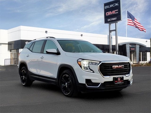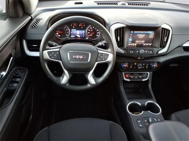 CARFAX One-Owner. SLE Terrain SLE, 4D Sport Utility, 1.5L DOHC, 9-Speed Automatic, FWD, Summit White, Jet Black Cloth, 2 USB Data Ports w/Auxiliary Input Jack, 3.47 Axle Ratio, 4-Way Manual Driver's Seat, 4-Way Manual Front Passenger Seat, 4-Wheel Disc Brakes, 4.2 Multi-Color Driver Information Screen, 6 Speakers, 6-Speaker Audio System Feature, 8-Way Power Driver Seat Adjuster, ABS brakes, Air Conditioning, All-Weather Cargo Mat (LPO), All-Weather Floor Mats, Alloy wheels, AM/FM radio: SiriusXM, Auto High-beam Headlights, Auto-dimming Rear-View mirror, Automatic temperature control, Bluetooth® For Phone, Brake assist, Bumpers: body-color, Compass, Delay-off headlights, Driver & Front Passenger Heated Seats, Driver Convenience Package, Driver door bin, Driver vanity mirror, Dual front impact airbags, Dual front side impact airbags, Dual-Zone Automatic Climate Control, Electronic Stability Control, Emergency communication system: OnStar Guidance, Four wheel independent suspension, Front anti-roll bar, Front Bucket Seats, Front Center Armrest, Front reading lights, Fully automatic headlights, Heated door mirrors, Illuminated entry, Interior Protection Package (LPO) (DISC), License Plate Front Mounting Package, Low tire pressure warning, Not Equipped w/Driver & Fr Pass Heated Seats, Occupant sensing airbag, Outside temperature display, Overhead airbag, Overhead console, Panic alarm, Passenger door bin, Passenger vanity mirror, Power door mirrors, Power Driver Lumbar Control, Power steering, Power windows, Preferred Equipment Group 3SA, Premium Cloth Seat Trim, Radio data system, Radio: GMC Infotainment Audio System w/7 Display, Rear anti-roll bar, Rear seat center armrest, Rear window defroster, Rear window wiper, Remote keyless entry, Remote Start, Roof-Mounted Luggage Rack Side Rails, Security system, SiriusXM Radio, Speed control, Speed-sensing steering, Split folding rear seat, Spoiler, Steering wheel mounted audio controls, Tachometer, Telescoping steering wheel, Tilt steering wheel, Traction control, Trip computer, Variably intermittent wipers, Wheels: 17 x 7 Silver Painted Aluminum, Wireless Apple CarPlay/Wireless Android Auto. 1.5L DOHC FWD