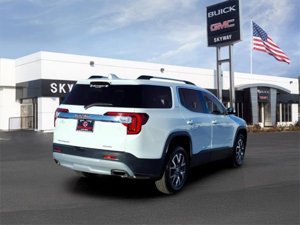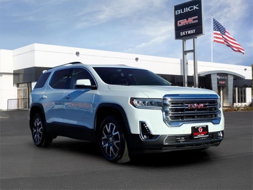 CARFAX One-Owner. SLT Acadia SLT, 4D Sport Utility, 2.0L Turbocharged, 9-Speed Automatic, AWD, Summit White, Jet Black Leather, 18 Aluminum Wheels, 3.47 Final Drive Axle Ratio, 3rd row seats: split-bench, 4-Way Manual Passenger Seat Adjuster, 4-Wheel Disc Brakes, 6-Passenger (2-2-2 Seating Configuration), 7-Passenger (2-3-2 Seating Configuration), 8 Speakers, 8-Way Power Driver Seat Adjuster, ABS brakes, Air Conditioning, Alloy wheels, AM/FM radio: SiriusXM with 360L, Apple CarPlay/Android Auto, Auto High-beam Headlights, Auto-dimming Rear-View mirror, Automatic temperature control, Bose Premium 8-Speaker Audio System Feature, Brake assist, Bumpers: body-color, Compass, Delay-off headlights, Driver door bin, Driver vanity mirror, Dual front impact airbags, Dual front side impact airbags, Electronic Stability Control, Emergency communication system: OnStar and GMC connected services capable, Four wheel independent suspension, Front anti-roll bar, Front Bucket Seats, Front Center Armrest, Front dual zone A/C, Front fog lights, Front License Plate Bracket, Front reading lights, Fully automatic headlights, Garage door transmitter, Heated door mirrors, Heated Driver & Front Passenger Seats, Heated front seats, Illuminated entry, Knee airbag, Low tire pressure warning, Navigation System, Occupant sensing airbag, Outside temperature display, Overhead airbag, Overhead console, Panic alarm, Passenger door bin, Passenger vanity mirror, Perforated Leather-Appointed Seat Trim, Power door mirrors, Power Driver Lumbar Control Seat Adjuster, Power driver seat, Power Liftgate, Power steering, Power windows, Preferred Equipment Group 4SA, Radio data system, Radio: AM/FM 8 Diagonal Multi-Touch Navigation, Rear air conditioning, Rear anti-roll bar, Rear reading lights, Rear window defroster, Rear window wiper, Remote keyless entry, Roof rack: rails only, Security system, SiriusXM w/360L, Speed control, Speed-sensing steering, Spoiler, Steering wheel mounted audio controls, Tachometer, Telescoping steering wheel, Tilt steering wheel, Traction control, Trip computer, Turn signal indicator mirrors, Variably intermittent wipers, Voltmeter, Wireless Apple CarPlay/Wireless Android Auto. 2.0L Turbocharged AWD