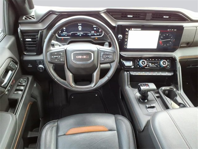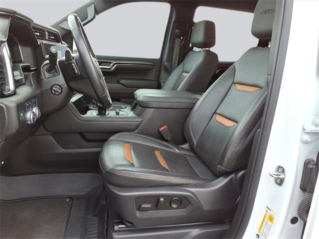 CARFAX One-Owner. AT4 Sierra 1500 AT4, 4D Crew Cab, EcoTec3 6.2L V8, 10-Speed Automatic, 4WD, Summit White, Jet Black With Kalahari Accents Leather, 10-Way Power Driver Seat Adjuster w/Lumbar, 10-Way Power Passenger Seat Adjuster w/Lumbar, 120-Volt Bed Mounted Power Outlet, 120-Volt Instrument Panel Power Outlet, 170 Amp Alternator, 18 x 8.5 Machined Aluminum Wheels, 2 Charge/Data USB Ports Inside Center Console, 2 Type-C Charge-Only Rear USB Ports, 2 USB Ports, 220 Amp Alternator, 3.23 Rear Axle Ratio, 4-Wheel Disc Brakes, 7 Speakers, ABS brakes, Adaptive Cruise Control, Air Conditioning, Alloy wheels, AM/FM radio, Apple CarPlay/Android Auto, AT4 Preferred Package, AT4 Premium Package, Auto High-beam Headlights, Auto-dimming door mirrors, Auto-dimming Rear-View mirror, Auto-Locking Rear Differential, Automatic Emergency Braking, Automatic temperature control, Auxiliary External Transmission Oil Cooler, Bed View Camera, Black Chrome Header & Grille Insert Bars, Block heater, Brake assist, Buckle to Drive, Bumpers: body-color, Cargo Tie-Downs (4) (LPO), Color-Keyed Carpeting Floor Covering, Compass, Deep-Tinted Glass, Delay-off headlights, Driver door bin, Driver Memory, Driver vanity mirror, Dual front impact airbags, Dual front side impact airbags, Electric Rear-Window Defogger, Electrical Steering Column Lock, Electronic Stability Control, Emergency communication system: OnStar and GMC connected services capable, Engine Block Heater, External Engine Oil Cooling, Floor-Mounted Center Console, Following Distance Indicator, Forward Collision Alert, Front anti-roll bar, Front Bucket Seats, Front Center Armrest, Front dual zone A/C, Front fog lights, Front License Plate Kit, Front Pedestrian Braking, Front Prem Floor Liners w/Removable Carpet Insert, Front Rainsensing Wipers, Front reading lights, Front wheel independent suspension, Fully automatic headlights, GMC Connected Access Capable, HD Surround Vision, Heated 2nd Row Outboard Seats, Heated door mirrors, Heated Driver & Front Outboard Passenger Seating, Heated front seats, Heated rear seats, Heated steering wheel, Heavy-Duty Air Filter, Hill Descent Control, Hitch Guidance, Hitch Guidance w/Hitch View, Illuminated entry, In-Vehicle Trailering App, Integrated Trailer Brake Controller, IntelliBeam Automatic High Beam On/Off, Keyless Open & Start, Lane Keep Assist w/Lane Departure Warning, LED Cargo Area Lighting, Low tire pressure warning, Memory seat, Multicolor 15 Diagonal Head-Up Display, Navigation System, Not Equipped w/Steering Column Lock, Occupant sensing airbag, Off-Road High Clearance Step (LPO), Off-Road Suspension, OnStar & GMC Connected Services Capable, Outside temperature display, Overhead airbag, Overhead console, Panic alarm, Passenger door bin, Passenger vanity mirror, Perforated Front Leather Seat Trim, Perimeter Lighting, Power Door Locks, Power door mirrors, Power driver seat, Power Front Passenger Windows w/Express Up/Down, Power Front Windows w/Driver Express Up/Down, Power passenger seat, Power Rake & Telescoping Steering Column, Power Rear Windows w/Express Down, Power Sliding Rear Window w/Rear Defogger, Power steering, Power Sunroof, Power windows, Preferred Equipment Group 4SB, Premium audio system: GMC Infotainment System, Premium Bose 7-Speaker Sound System, Push Button Start, Radio data system, Radio: Premium GMC Infotainment Audio System, Rain sensing wipers, Rear Camera Mirror, Rear Cross Traffic Braking, Rear Pedestrian Detection, Rear Prem Floor Liners w/Removable Carpet Insert, Rear reading lights, Rear seat center armrest, Rear step bumper, Rear Wheelhouse Liners, Rear window defroster, Red Recovery Hooks, Remote keyless entry, Remote Vehicle Starter System, Safety Alert Seat, Security system, SiriusXM w/360L, Speed control, Speed-sensing steering, Split folding rear seat, Spray-On Pickup Bed Liner w/AT4 Logo, Steering Wheel Audio Controls, Steering whee