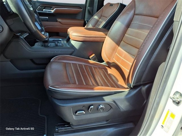 CARFAX One-Owner. Denali Ultimate Sierra 1500 Denali Ultimate, 4D Crew Cab, EcoTec3 6.2L V8, 10-Speed Automatic, 4WD, White Frost Tricoat, Alpine Umber Leather, 12 Speakers, 120-Volt Bed Mounted Power Outlet, 120-Volt Interior Power Outlet, 16-Way Power Driver Seat Adjuster w/Lumbar, 16-Way Power Passenger Seat Adjuster w/Lumbar, 170 Amp Alternator, 2 Charge/Data USB Ports Inside Center Console, 2 Type-C Charge-Only Rear USB Ports, 2 USB Ports, 3.23 Rear Axle Ratio, 4-Wheel Disc Brakes, ABS brakes, Adaptive suspension, Air Conditioning, Alloy wheels, AM/FM radio: SiriusXM with 360L, Apple CarPlay/Android Auto, Auto High-beam Headlights, Auto-dimming door mirrors, Auto-dimming Rear-View mirror, Auto-Locking Rear Differential, Automatic temperature control, Bed View Camera, Body Color Wheel Arch Moldings (LPO), Bose Premium Series w/12-Speaker System, Brake assist, Buckle to Drive, Bumpers: body-color, Chrome Recovery Hooks, Color-Keyed Carpeting Floor Covering, Compass, Console-Mounted Safe (LPO), Deep-Tinted Glass, Delay-off headlights, Denali Premium Suspension w/Adaptive Ride Control, Driver door bin, Driver Memory, Driver vanity mirror, Dual Active Exhaust, Dual front impact airbags, Dual front side impact airbags, Electric Rear-Window Defogger, Electronic Stability Control, Emergency communication system: OnStar and GMC connected services capable, Enhanced Automatic Emergency Braking, Floor-Mounted Center Console, Following Distance Indicator, Forward Collision Alert, Front anti-roll bar, Front Bucket Seats, Front Center Armrest, Front dual zone A/C, Front fog lights, Front License Plate Kit, Front Pedestrian Braking, Front Rain-Sensing Wipers, Front reading lights, Front wheel independent suspension, Full Grain Leather Seat Trim, Fully automatic headlights, Garage door transmitter, Genuine wood console insert, Genuine wood dashboard insert, Genuine wood door panel insert, GMC Connected Access Capable, HD Surround Vision, Heads-Up Display, Heated 2nd Row Outboard Seats, Heated door mirrors, Heated Driver & Front Outboard Passenger Seating, Heated front seats, Heated rear seats, Heated steering wheel, Heavy-Duty Air Filter, Hill Descent Control, Hitch Guidance, Hitch View, Illuminated entry, In-Vehicle Trailering System App, Integrated Trailer Brake Controller, IntelliBeam Automatic High Beam On/Off, Keyless Open & Start, Lane Keep Assist w/Lane Departure Warning, LED Cargo Area Lighting, Low tire pressure warning, Memory seat, Multicolor 15 Diagonal Head-Up Display, MultiPro Tailgate Audio System by Kicker (LPO), Navigation System, Occupant sensing airbag, OnStar & GMC Connected Services Capable, Outside temperature display, Overhead airbag, Overhead console, Panic alarm, Passenger door bin, Passenger vanity mirror, Perimeter Lighting, Power Door Locks, Power door mirrors, Power driver seat, Power Front Passenger Windows w/Express Up/Down, Power Front Windows w/Driver Express Up/Down, Power moonroof, Power passenger seat, Power Rake & Telescoping Steering Column, Power Rear Windows w/Express Down, Power Sliding Rear Window w/Rear Defogger, Power steering, Power Sunroof, Power windows, Preferred Equipment Group 5SB, Premium audio system: GMC Infotainment System, Push Button Start, Radio data system, Radio: Premium GMC Infotainment Audio System, Rain sensing wipers, Rear Cross Traffic Braking, Rear Pedestrian Detection, Rear reading lights, Rear seat center armrest, Rear step bumper, Rear Underseat Storage (LPO), Rear Wheelhouse Liners, Rear window defroster, Remote keyless entry, Remote Vehicle Starter System, Safety Alert Seat, Security system, SiriusXM w/360L, Speed control, Speed-sensing steering, Split folding rear seat, Spray-On Pickup Bedliner w/Denali Logo, Steering Wheel Audio Controls, Steering wheel mounted audio controls, Super Cruise, Tachometer, Telescoping steering wheel, Theft Deterrent System (Unauthorized Entry), T