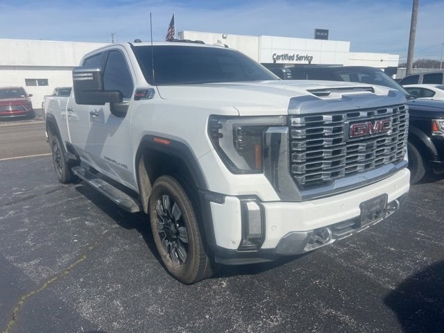 CARFAX One-Owner. Denali Sierra 2500HD Denali, 4D Crew Cab, Duramax 6.6L V8 Turbodiesel, 10-Speed Automatic, 4WD, Summit White, Jet Black Leather, 12-Way Power Driver Seat Adjuster w/Lumbar, 12-Way Power Passenger Seat Adjuster w/Lumbar, 120-Volt Bed Mounted Power Outlet, 120-Volt Instrument Panel Power Outlet, 2 Charge-Only Rear USB Ports, 2 Charge/Data USB Ports Inside Center Console, 2 USB Ports, 2-Speed Active Transfer Case, 220-Amp Alternator, 3.73 Rear Axle Ratio, 4-Wheel Disc Brakes, 7 Speakers, ABS brakes, Adaptive Cruise Control, Air Conditioning, Alloy wheels, AM/FM radio: SiriusXM with 360L, Apple CarPlay/Android Auto, Auto High-beam Headlights, Auto-dimming door mirrors, Auto-dimming Rear-View mirror, Automatic Emergency Braking, Automatic temperature control, Bed View Camera w/2 Trailer Camera Provisions, Bose Premium 7-Speaker Sound System, Brake assist, Buckle to Drive, Bumpers: body-color, Compass, Deep-Tinted Glass, Delay-off headlights, Denali Reserve Package, Driver door bin, Driver Memory, Driver vanity mirror, Dual front impact airbags, Dual front side impact airbags, Electric Rear-Window Defogger, Electronic Stability Control, Emergency communication system: OnStar and GMC connected services capable, Engine Block Heater, Exhaust Brake, Floor-Mounted Center Console, Following Distance Indicator, Forge Perforated Leather-Appointed Front Seat Trim, Forward Collision Alert, Front anti-roll bar, Front Bucket Seats, Front Center Armrest, Front dual zone A/C, Front fog lights, Front License Plate Kit, Front Pedestrian Braking, Front Rain-Sensing Wipers, Front reading lights, Front wheel independent suspension, Fully automatic headlights, Garage door transmitter, Genuine wood dashboard insert, Genuine wood door panel insert, GMC Connected Access Capable, Gooseneck/5th Wheel Prep Package, HD Surround Vision, Heated 2nd Row Outboard Seats, Heated door mirrors, Heated Driver & Front Outboard Passenger Seats, Heated front seats, Heated rear seats, Heated steering wheel, Heavy-Duty 80 Amp Battery, Hill Descent Control, Hitch Guidance w/Hitch View, Illuminated entry, In-Vehicle Trailering System App, Inside Rearview Auto-Dimming Rear Camera Mirror, Integrated Trailer Brake Controller, IntelliBeam Automatic High Beam On/Off, Keyless Open & Start, Lane Departure Warning System, LED Cargo Area Lighting, LED Smoked Amber Roof Marker Lamps, Low tire pressure warning, Manual Tilt-Wheel/Telescoping Steering Column, Max Trailering Package, Memory seat, Multicolor 15 Diagonal Head-Up Display, Occupant sensing airbag, Off-Road Suspension, OnStar & GMC Connected Services Capable, Outside temperature display, Overhead airbag, Overhead console, Panic alarm, Passenger door bin, Passenger vanity mirror, Pickup Box, Polished Exhaust Tip, Power door mirrors, Power driver seat, Power Front Passenger Windows w/Express Up/Down, Power passenger seat, Power Sliding Rear Window w/Defogger, Power steering, Power Sunroof, Power windows, Preferred Equipment Group 5SA, Premium audio system: Premium GMC Infotainment System, Push Button Start, Radio: AM/FM w/Premium GMC Infotainment System, Rain sensing wipers, Rear Cross Traffic Alert, Rear reading lights, Rear seat center armrest, Rear step bumper, Rear Wheelhouse Liners, Rear window defroster, Remote keyless entry, Remote Vehicle Starter System, Safety Alert Seat, Security system, Signature Chrome Denali Grille, SiriusXM w/360L, Speed control, Speed-sensing steering, Split folding rear seat, Spray-On Bedliner w/Denali Logo, Steering Wheel Audio Controls, Steering wheel mounted audio controls, Tachometer, Technology Package, Telescoping steering wheel, Tilt steering wheel, Traction control, Trailer Cam Provisions & Trailer Viewing Software, Trailer Side Blind Zone Alert, Trip computer, Turn signal indicator mirrors, Ultrasonic Front & Rear Park Assist, Unauthorized Entry Theft-Deterrent System, Universal Hom