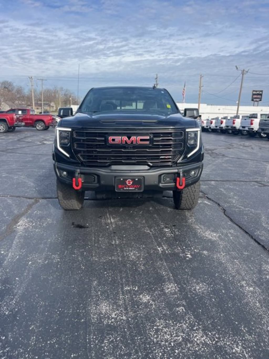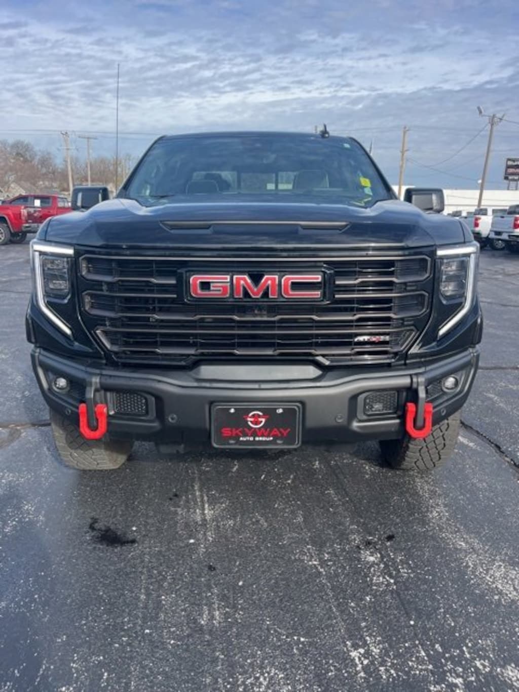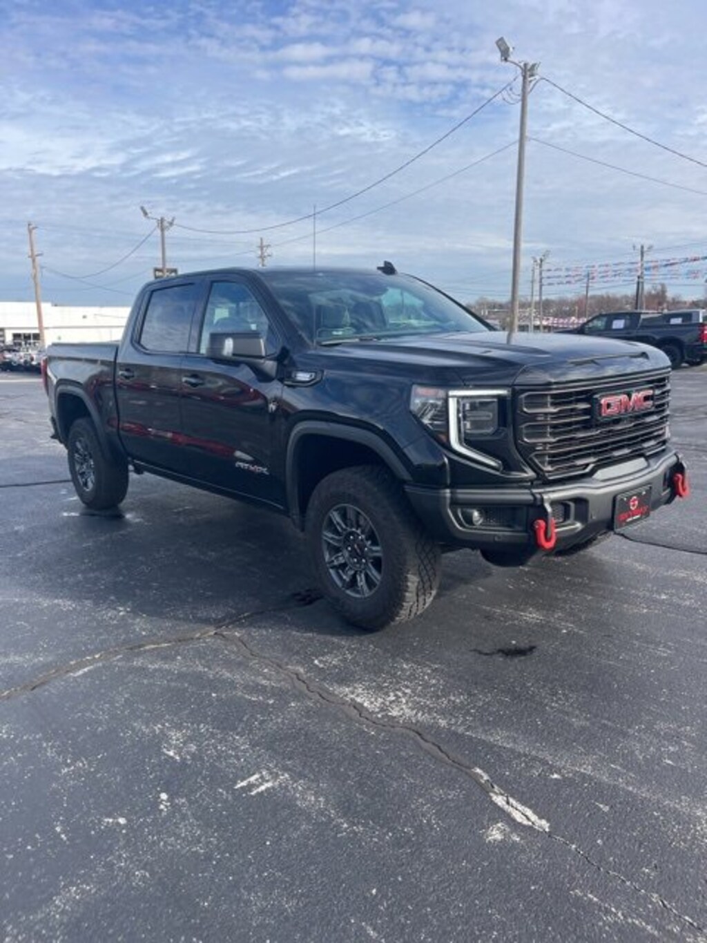 CARFAX One-Owner. AT4X Sierra 1500 AT4X, 4D Crew Cab, 3.0L I6, 10-Speed Automatic, 4WD, Onyx Black, Obsidian Rush Leather, 12 Speakers, 120-Volt Bed Mounted Power Outlet, 120-Volt Interior Power Outlet, 16-Way Power Driver Seat Adjuster w/Lumbar, 16-Way Power Passenger Seat Adjuster w/Lumbar, 2 Charge/Data USB Ports Inside Center Console, 2 Type-C Charge-Only Rear USB Ports, 2 USB Ports, 220 Amp Alternator, 3.23 Rear Axle Ratio, 4-Wheel Disc Brakes, ABS brakes, Air Conditioning, Alloy wheels, AM/FM radio: SiriusXM with 360L, Apple CarPlay/Android Auto, Auto High-beam Headlights, Auto-dimming door mirrors, Auto-dimming Rear-View mirror, Automatic Emergency Braking, Automatic temperature control, Bed View Camera, Block heater, Bose Premium Series w/12-Speaker System, Brake assist, Buckle to Drive, Color-Keyed Carpeting Floor Covering, Compass, Deep-Tinted Glass, Delay-off headlights, Driver door bin, Driver Memory, Driver vanity mirror, Driver-Selectable Full-Locking Front Differential, Driver-Selectable Full-Locking Rear Differential, Dual front impact airbags, Dual front side impact airbags, Electric Rear-Window Defogger, Electronic Stability Control, Emergency communication system: OnStar, Engine Block Heater, Floor-Mounted Center Console, Following Distance Indicator, Forward Collision Alert, Front anti-roll bar, Front Bucket Seats, Front Center Armrest, Front dual zone A/C, Front fog lights, Front License Plate Kit, Front Pedestrian Braking, Front Prem Floor Liners w/Removable Carpet Insert, Front Rain-Sensing Wipers, Front reading lights, Front wheel independent suspension, Full Grain Leather Seat Trim, Fully automatic headlights, Garage door transmitter, Genuine wood dashboard insert, Genuine wood door panel insert, Gloss Black Header w/Drk Nickel Grille Insert Bars, HD Surround Vision, Heads-Up Display, Heated 2nd Row Outboard Seats, Heated door mirrors, Heated Driver & Front Outboard Passenger Seating, Heated front seats, Heated rear seats, Heated steering wheel, Heavy-Duty Air Filter, Hill Descent Control, Hitch Guidance, Hitch View, Illuminated entry, In-Vehicle Trailering System App, Integrated Trailer Brake Controller, IntelliBeam Automatic High Beam On/Off, Keyless Open & Start, Lane Keep Assist w/Lane Departure Warning, Leather steering wheel, LED Cargo Area Lighting, Low tire pressure warning, Memory seat, Multicolor 15 Diagonal Head-Up Display, MultiPro Tailgate Audio System by Kicker (LPO), Navigation System, Occupant sensing airbag, Off-Road Suspension, OnStar Services Capable, Outside temperature display, Overhead airbag, Overhead console, Panic alarm, Passenger door bin, Passenger vanity mirror, Perimeter Lighting, Power Door Locks, Power door mirrors, Power driver seat, Power Front Passenger Windows w/Express Up/Down, Power Front Windows w/Driver Express Up/Down, Power moonroof, Power passenger seat, Power Rake & Telescoping Steering Column, Power Rear Windows w/Express Down, Power Sliding Rear Window w/Rear Defogger, Power steering, Power Sunroof, Power windows, Preferred Equipment Group 4SG, Push Button Start, Radio data system, Radio: Premium GMC Infotainment Audio System, Rain sensing wipers, Rear Cross Traffic Braking, Rear Pedestrian Detection, Rear Prem Floor Liners w/Removable Carpet Insert, Rear reading lights, Rear seat center armrest, Rear step bumper, Rear Wheelhouse Liners, Rear window defroster, Remote keyless entry, Remote Vehicle Starter System, Safety Alert Seat, Security system, SiriusXM w/360L Trial Subscription, Speed control, Speed-sensing steering, Split folding rear seat, Spray-On Pickup Bedliner w/GMC Logo, Steering Wheel Audio Controls, Steering wheel mounted audio controls, Tachometer, Telescoping steering wheel, Theft Deterrent System (Unauthorized Entry), Tilt steering wheel, Traction control, Trailer Camera Provisions, Trailer Side Blind Zone Alert, Trailer Tire Pressure Monitor System, Traileri