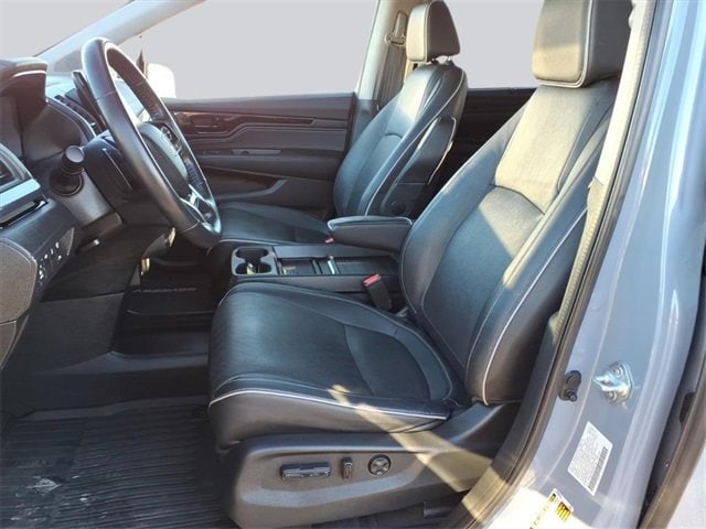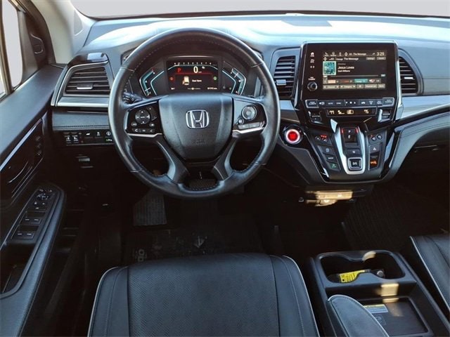 CARFAX One-Owner. Elite Odyssey Elite, 4D Passenger Van, 3.5L V6 SOHC i-VTEC 24V, 10-Speed Automatic, FWD, Black w/Leather Seat Trim, 11 Speakers, 3.61 Axle Ratio, 3rd row seats: split-bench, 4-Wheel Disc Brakes, A/V remote: CabinControl, ABS brakes, Adaptive Cruise Control: Adaptive Cruise Control (ACC) with Low-Speed Follow, Air Conditioning, Alloy wheels, AM/FM radio: SiriusXM, Anti-whiplash front head restraints, Apple CarPlay/Android Auto, Auto High-beam Headlights, Auto-dimming door mirrors, Auto-dimming Rear-View mirror, Automatic temperature control, Blind Spot Information (BSI) System warning, Brake assist, Bumpers: body-color, CD player, Compass, Delay-off headlights, Driver door bin, Driver vanity mirror, Driver's Seat Mounted Armrest, Dual front impact airbags, Dual front side impact airbags, DVD-Audio, Electronic Stability Control, Emergency communication system: HondaLink, Exterior Parking Camera Rear, Four wheel independent suspension, Front anti-roll bar, Front Bucket Seats, Front dual zone A/C, Front fog lights, Front reading lights, Fully automatic headlights, Garage door transmitter: HomeLink, Headphones, Heated door mirrors, Heated Front Bucket Seats, Heated front seats, Heated steering wheel, Illuminated entry, Knee airbag, Lane departure: Lane Keeping Assist System (LKAS) active, Leather Seat Trim, Leather steering wheel, Low tire pressure warning, Memory seat, Navigation system: Honda Satellite-Linked Navigation System, Occupant sensing airbag, Outside temperature display, Overhead airbag, Overhead console, Panic alarm, Passenger door bin, Passenger seat mounted armrest, Passenger vanity mirror, Power door mirrors, Power driver seat, Power Liftgate, Power moonroof, Power passenger seat, Power steering, Power windows, Radio data system, Radio: 550-Watt AM/FM/HD Premium Audio System, Rain sensing wipers, Rear air conditioning, Rear anti-roll bar, Rear audio controls, Rear reading lights, Rear seat center armrest, Rear window defroster, Rear window wiper, Reclining 3rd row seat, Remote keyless entry, Security system, Speed control, Speed-sensing steering, Speed-Sensitive Wipers, Split folding rear seat, Spoiler, Steering wheel mounted audio controls, Tachometer, Telescoping steering wheel, Tilt steering wheel, Traction control, Trip computer, Turn signal indicator mirrors, Variably intermittent wipers, Wheels: 19 Unique Machine-Finished Alloy. 3.5L V6 SOHC i-VTEC 24V FWD