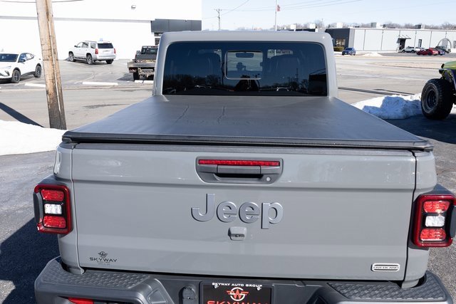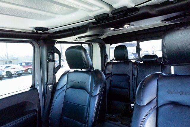 CARFAX One-Owner. Overland Gladiator Overland, 4D Crew Cab, 3.6L V6 24V VVT, 8-Speed Automatic, 4WD, Sting-Gray Clearcoat, Black Leather, 1-Year SiriusXM Guardian Trial, 110 mph Vehicle Max Speed Calibration, 240 Amp Alternator, 3.73 Rear Axle Ratio, 4-Wheel Disc Brakes, 400W Inverter, 5-Year SiriusXM Traffic Service, 5-Year SiriusXM Travel Link Service, 8 Speakers, 8.4 Radio & Premium Audio Group, 8.4 Touchscreen Display, ABS brakes, Air Conditioning, Alloy wheels, Alpine Premium Audio System, AM/FM radio: SiriusXM, Apple CarPlay/Android Auto, Auto-Dimming Rear-View Mirror, Automatic temperature control, Black 3-Piece Hard Top, Body Color 3-Piece Hard Top, Brake assist, Class IV Hitch Receiver, Cold Weather Group, Compass, Daytime Running Lamps LED Accents, Delay-off headlights, Driver door bin, Driver vanity mirror, Dual front impact airbags, Dual front side impact airbags, Electronic Stability Control, Emergency/Assistance Call, For Details, Visit DriveUconnect.com, Freedom Panel Storage Bag, Front anti-roll bar, Front Bucket Seats, Front Center Armrest w/Storage, Front dual zone A/C, Front fog lights, Front LED Fog Lamps, Front reading lights, Full Length Floor Console Premium Armrest, Fully automatic headlights, Garage door transmitter, GPS Navigation, HD Radio, Heated door mirrors, Heated Front Seats, Heated Steering Wheel, Heavy-Duty Engine Cooling, Illuminated entry, Integrated roll-over protection, Leather steering wheel, Leather Trimmed Bucket Seats, Leather Wrapped Park Brake Handle, Leather Wrapped Shift Knob, LED Lighting Group, LED Park Turn Lamps, LED Premium Reflector Headlamps, LED Taillamps, Low tire pressure warning, MOPAR All-Weather Floor Mats (DISC), No Soft Top, Normal Duty Plus Suspension, Occupant sensing airbag, Off-Road Info Pages, Outside temperature display, Overland Cloth Bucket Seats, Panic alarm, ParkView Rear Back-Up Camera, Passenger door bin, Passenger vanity mirror, Popular Equipment Package, Power door mirrors, Power steering, Power windows, Premium Door Trim Panel, Premium Wrapped I/P Bezel, Quick Order Package 24G, Radio data system, Radio: Uconnect 4 w/7 Display, Radio: Uconnect 4C Nav w/8.4 Display, Rear anti-roll bar, Rear Armrest w/Cupholder Seat, Rear reading lights, Rear Sliding Window, Rear Window Defroster, Remote keyless entry, Remote Proximity Keyless Entry, Remote Start System, Security system, SiriusXM Traffic Plus, SiriusXM Travel Link, Speed control, Split folding rear seat, Steering wheel mounted audio controls, Tachometer, Telescoping steering wheel, Tilt steering wheel, Traction control, Trailer Hitch Zoom, Trailer Tow Package, Trip computer, Variably intermittent wipers, Voltmeter, Wheels: 18 x 7.5 Granite Crystal Aluminum. 3.6L V6 24V VVT 4WD