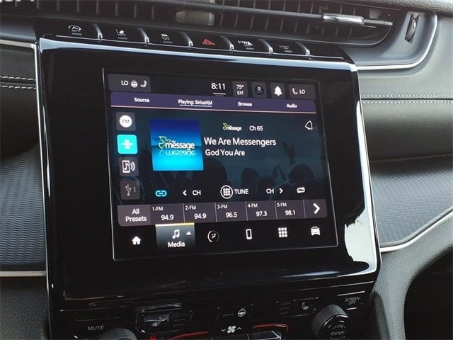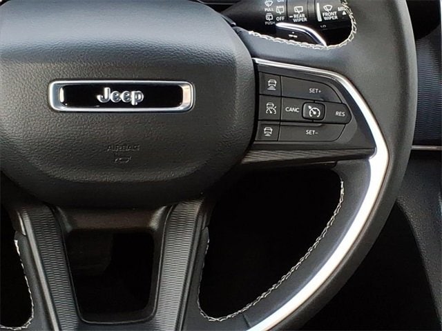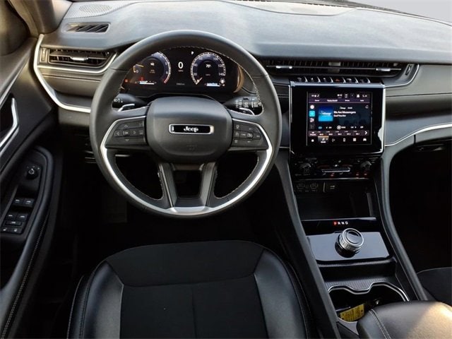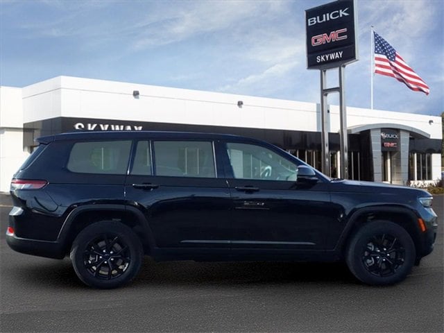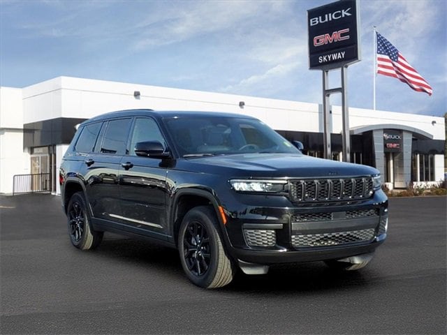 CARFAX One-Owner. Altitude Grand Cherokee L Altitude, 4D Sport Utility, 3.6L V6 24V VVT, 8-Speed Automatic, 4WD, Diamond Black Crystal Pearlcoat, Global Black Artificial Leather, 115V Auxiliary Power Outlet, 2nd Row 60/40 Bench w/Manual Tip/Slide, 2nd Row Seat Center Armrest/Cupholders, 3 Rear Seat Head Restraints, 3.45 Rear Axle Ratio, 3rd Row Charge-Only USB Ports, 3rd row seats: split-bench, 4-Wheel Disc Brakes, 6 Speakers, 7-Passenger Seating, ABS brakes, Air Conditioning, Alloy wheels, Altitude Appearance Package, Anti-whiplash front head restraints, Automatic temperature control, Black Headliner, Brake assist, Bumpers: body-color, Capri Leatherette/Suede Seats, Center Rear 3-Point Seat Belt, Cloth Seats, Compass, Delay-off headlights, Delete Laredo Badge, Driver door bin, Driver vanity mirror, Dual front impact airbags, Dual front side impact airbags, Electronic Stability Control, Emergency communication system, Four wheel independent suspension, Front anti-roll bar, Front Bucket Seats, Front Center Armrest w/Storage, Front dual zone A/C, Front License Plate Bracket, Front reading lights, Fully automatic headlights, Gloss Black Exterior Accents, Heated door mirrors, Heated Front Seats, Heated Steering Wheel, Illuminated entry, Knee airbag, Low tire pressure warning, Manual Fold Seatbacks, Normal Duty Suspension, Occupant sensing airbag, Outside temperature display, Overhead airbag, Overhead console, Panic alarm, ParkView Rear Back-Up Camera, Passenger door bin, Passenger vanity mirror, Power door mirrors, Power driver seat, Power Liftgate, Power steering, Power windows, Quick Order Package 23B Altitude, Radio data system, Radio: Uconnect 5 w/8.4 Display, Rain Sensitive Windshield Wipers, Rear air conditioning, Rear anti-roll bar, Rear reading lights, Rear window defroster, Rear window wiper, Reclining 3rd row seat, Remote keyless entry, Remote Start System, Security system, Selectable Tire Fill Alert, Speed control, Speed-Sensitive Wipers, Split folding rear seat, Spoiler, Steering wheel mounted audio controls, Tachometer, Telescoping steering wheel, Tilt steering wheel, Traction control, Trip computer, Variably intermittent wipers, Voltmeter, Wheels: 18 x 8.0 Fully Painted Aluminum, Wheels: 18 x 8.0 Fully Painted Aluminum 1, Wireless Charging Pad. 3.6L V6 24V VVT 4WD
