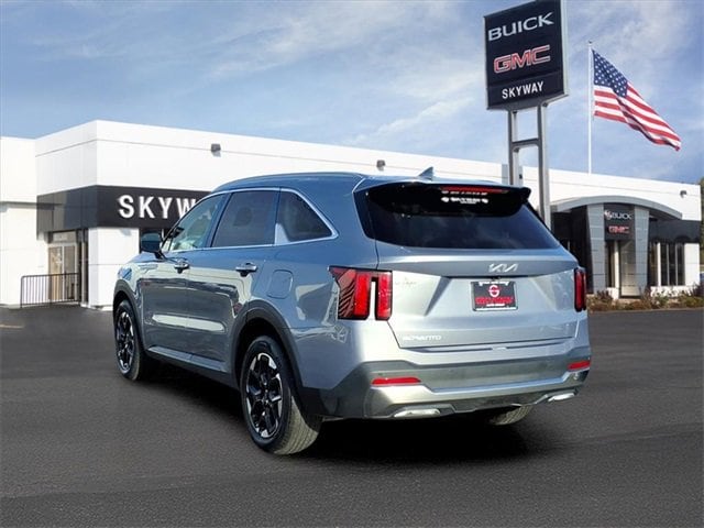 CARFAX One-Owner. S Sorento S, 4D Sport Utility, 2.5L I4 DGI DOHC 16V LEV3-SULEV30 191hp, 8-Speed Automatic, FWD, Everlasting Silver, Black Artificial Leather, 3.798 Axle Ratio, 3rd row seats: split-bench, 4-Wheel Disc Brakes, 6 Speakers, ABS brakes, Air Conditioning, Alloy wheels, AM/FM radio: SiriusXM, Apple CarPlay & Android Auto, Auto High-beam Headlights, Automatic temperature control, Brake assist, Bumpers: body-color, Carpeted Floor Mats, Delay-off headlights, Driver door bin, Driver vanity mirror, Dual front impact airbags, Dual front side impact airbags, Electronic Stability Control, Emergency communication system: 911 Connect, Exterior Parking Camera Rear, Four wheel independent suspension, Front anti-roll bar, Front Bucket Seats, Front Center Armrest, Front dual zone A/C, Front fog lights, Front reading lights, Fully automatic headlights, Heated door mirrors, Heated Front Bucket Seats, Heated front seats, Illuminated entry, Illuminated Hatch Sill Plate, Knee airbag, Leather Shift Knob, Leather steering wheel, Low tire pressure warning, Navigation System, Occupant sensing airbag, Outside temperature display, Overhead airbag, Overhead console, Panic alarm, Passenger door bin, Passenger vanity mirror, Power door mirrors, Power driver seat, Power steering, Power windows, Radio data system, Radio: AM/FM Audio System, Rear anti-roll bar, Rear reading lights, Rear seat center armrest, Rear side impact airbag, Rear window defroster, Rear window wiper, Remote keyless entry, Security system, Smart Key w/ Push Button and Remote Start, Speed control, Speed-sensing steering, Split folding rear seat, Spoiler, Steering wheel mounted audio controls, SynTex Artificial Leather Seat Trim, Tachometer, Telescoping steering wheel, Tilt steering wheel, Traction control, Trip computer, Turn signal indicator mirrors, Variably intermittent wipers, Wheels: 7.5J x 18 Alloy w/Machine Finish. 2.5L I4 DGI DOHC 16V LEV3-SULEV30 191hp FWD
