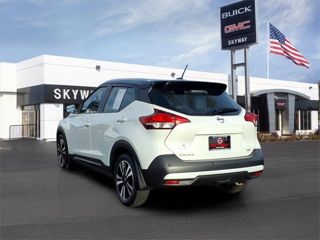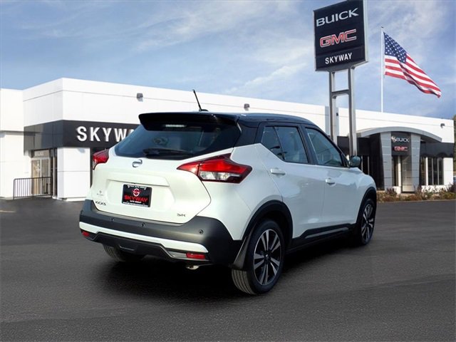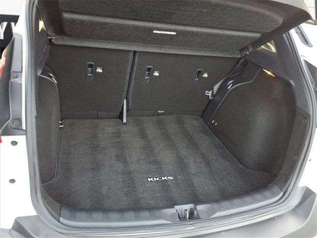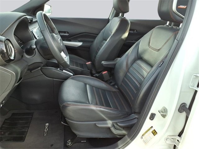 SR Kicks SR, 4D Sport Utility, 1.6L 4-Cylinder DOHC 16V, Automatic, FWD, Aspen White/Super Black, Charcoal Cloth, 17 Alloy Wheels, 3.927 Axle Ratio, 6 Speakers, ABS brakes, Air Conditioning, Alloy wheels, AM/FM radio: SiriusXM, Auto High-beam Headlights, Automatic temperature control, Blind Spot Warning, Bose Personal Plus Audio System, Brake assist, Bumpers: body-color, Carpeted Floor Mats w/Cargo Mat, Center Armrest w/Storage, Cloth Seat Trim, Compass, Delay-off headlights, Driver door bin, Driver vanity mirror, Driver's Seat Mounted Armrest, Dual front impact airbags, Dual front side impact airbags, Electronic Stability Control, Exterior Parking Camera Rear, Front anti-roll bar, Front Bucket Seats, Front fog lights, Front reading lights, Front wheel independent suspension, Fully automatic headlights, Heated door mirrors, Heated Front Seats, Illuminated entry, Illuminated Kick Plates, Knee airbag, Leather Shift Knob, Low tire pressure warning, NissanConnect featuring Apple CarPlay and Android Auto, Occupant sensing airbag, Outside temperature display, Overhead airbag, Panic alarm, Passenger door bin, Passenger vanity mirror, Power door mirrors, Power steering, Power windows, Prima-Tex Appointed Seat Trim, Radio data system, Radio: AM/FM Audio System, Rear Parking Sensors, Rear reading lights, Rear Roof Spoiler, Rear side impact airbag, Rear window defroster, Rear window wiper, Remote keyless entry, Roof rack: rails only, Security System, Speed control, Splash Guards Grain (4 Piece), Split folding rear seat, Spoiler, Sport steering wheel, SR Premium Package, Steering wheel mounted audio controls, Tachometer, Telescoping steering wheel, Tilt steering wheel, Traction control, Trip computer, Turn signal indicator mirrors, Variably intermittent wipers. 1.6L 4-Cylinder DOHC 16V FWD