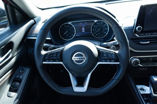 2021 Nissan Altima Scarlet Ember TintcoatCARFAX One-Owner. 2.5 SR Altima 2.5 SR, 4D Sedan, 2.5L 4-Cylinder DOHC 16V, Automatic, FWD, Scarlet Ember Tintcoat, Sport Cloth, 19 Alloy Wheels, 4-Wheel Disc Brakes, 6 Speakers, ABS brakes, Air Conditioning, Alloy wheels, AM/FM radio: SiriusXM, Auto High-beam Headlights, Blind Spot Warning, Body-Colored Splash Guards, Brake assist, Bumpers: body-color, Chrome Bumper Protector, Delay-off headlights, Driver door bin, Driver vanity mirror, Dual front impact airbags, Dual front side impact airbags, Electronic Stability Control, Four wheel independent suspension, Front anti-roll bar, Front Bucket Seats, Front Center Armrest, Front reading lights, Front Sport Bucket Seats, Fully automatic headlights, Heated Front Seats, Heated Outside Mirrors w/LED Turn Signal Indicators, Illuminated entry, Knee airbag, Leather Shift Knob, Low tire pressure warning, NissanConnect featuring Apple CarPlay and Android Auto, Occupant sensing airbag, Outside temperature display, Overhead airbag, Overhead console, Panic alarm, Passenger door bin, Passenger vanity mirror, Power door mirrors, Power driver seat, Power steering, Power windows, Radio data system, Radio: AM/FM Audio System, Rear anti-roll bar, Rear Parking Sensors, Rear reading lights, Rear seat center armrest, Rear side impact airbag, Rear window defroster, Remote keyless entry, Security system, Single Panel Moonroof, Speed control, Speed-sensing steering, Speed-Sensitive Wipers, Split folding rear seat, Sport Seat Trim, Sport steering wheel, SR Floor Mats/Trunk Mat/Hideaway Nets, SR Premium Package, Steering wheel mounted audio controls, Tachometer, Telescoping steering wheel, Tilt steering wheel, Traction control, Trip computer, Trunk Organizer Tray, Variably intermittent wipers. 2.5L 4-Cylinder DOHC 16V FWDClean CARFAX.Here at Skyway Buick-GMC we pride ourselves in a transparent car buying experience. We give YOU the customer the best price upfront. We provide every customer with a Carfax and repair order upon request. Come experience the right way to purchase your next car! Give us a call today to schedule a test drive! Skyway Buick GMC 808 Illinois Avenue Joplin MO, 64801.Dealer will not be held responsible for discrepancies in descriptions or pricing.28/39 City/Highway MPG 28/39 City/Highway MPGAwards:* JD Power Initial Quality Study (IQS)