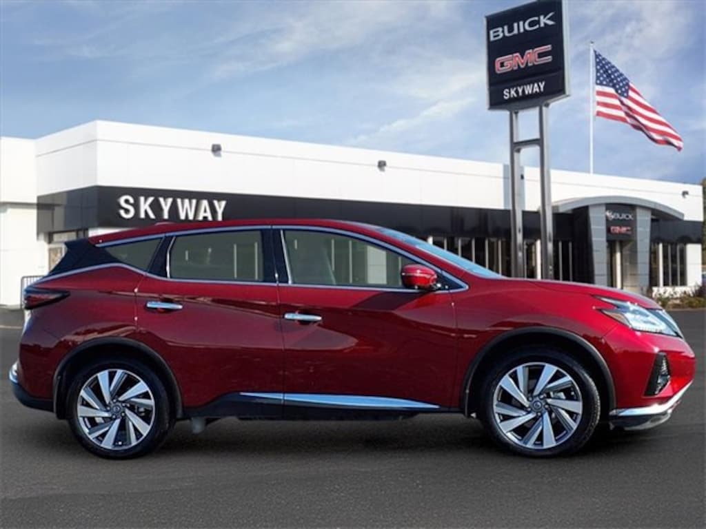 CARFAX One-Owner. SL Murano SL, 4D Sport Utility, 3.5L V6 DOHC 24V, Automatic, AWD, Scarlet Ember Tintcoat, Graphite Leather, 11 Speakers, 4-Wheel Disc Brakes, 4.667 Axle Ratio, ABS brakes, Air Conditioning, Alloy wheels, AM/FM radio: SiriusXM, AM/FM/CD/MP3/WMA Audio System, Auto High-beam Headlights, Auto-dimming Rear-View mirror, Automatic temperature control, Blind Spot Warning, Brake assist, Bumpers: body-color, Carpeted Floor Mats & Carpeted Cargo Mat, CD player, Child-Seat-Sensing Airbag, Delay-off headlights, Driver door bin, Driver vanity mirror, Dual front impact airbags, Dual front side impact airbags, Dual Panel Panoramic Moonroof, Electronic Stability Control, Exterior Parking Camera Rear, Four wheel independent suspension, Front anti-roll bar, Front Bucket Seats, Front Center Armrest, Front dual zone A/C, Front fog lights, Front reading lights, Fully automatic headlights, Garage door transmitter: HomeLink, Heated door mirrors, Heated Front Bucket Seats, Heated front seats, Heated rear seats, Heated steering wheel, Illuminated entry, Illuminated Kick Plates, Illuminated Kick Plates (PIO), Knee airbag, Leather-Appointed Seat Trim, Low tire pressure warning, Memory seat, Navigation system: NissanConnect Navigation, NissanConnect featuring Apple CarPlay and Android Auto, Occupant sensing airbag, Outside temperature display, Overhead airbag, Overhead console, Panic alarm, Passenger door bin, Passenger vanity mirror, Power door mirrors, Power driver seat, Power Liftgate, Power passenger seat, Power steering, Power windows, Radio data system, Rear anti-roll bar, Rear Bumper Protector, Rear reading lights, Rear seat center armrest, Rear side impact airbag, Rear window defroster, Rear window wiper, Remote keyless entry, Roof rack: rails only, Security system, SL Moonroof Package, Speed control, Speed-sensing steering, Speed-Sensitive Wipers, Splash Guards, Split folding rear seat, Spoiler, Steering wheel mounted audio controls, Tachometer, Telescoping steering wheel, Tilt steering wheel, Traction control, Trip computer, Turn signal indicator mirrors, Variably intermittent wipers, Wheels: 20 Machined Aluminum-Alloy. 3.5L V6 DOHC 24V AWD
