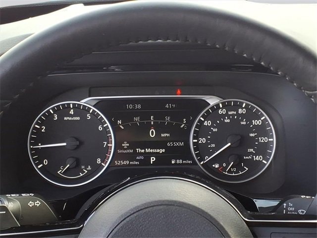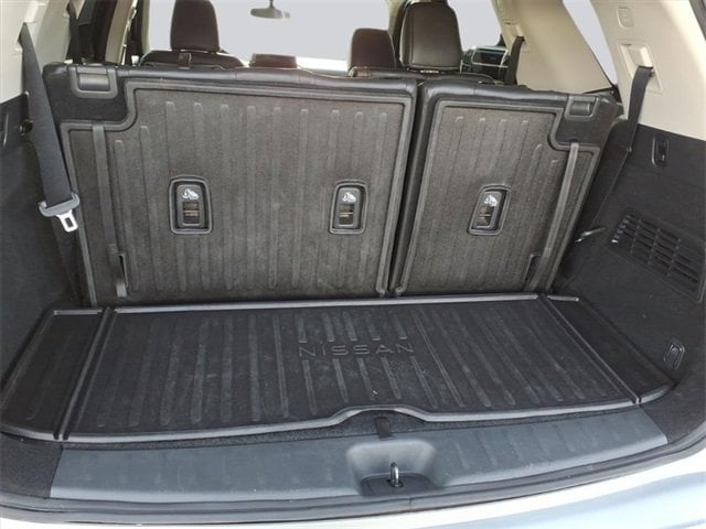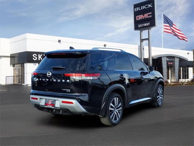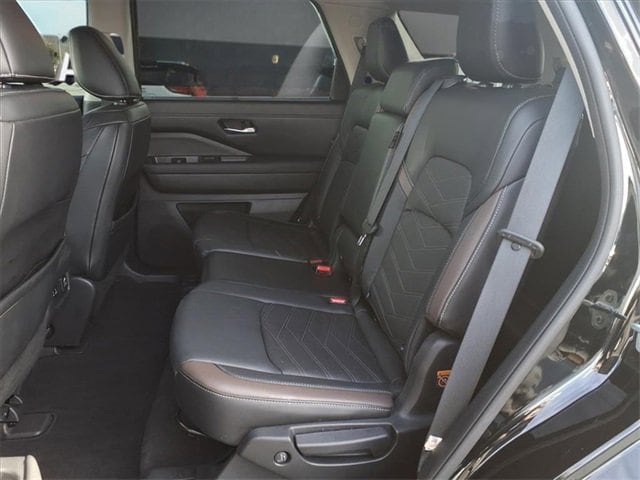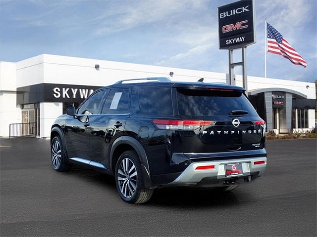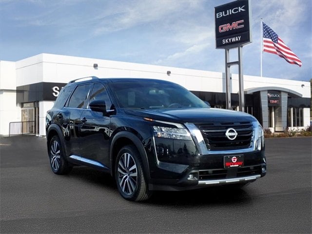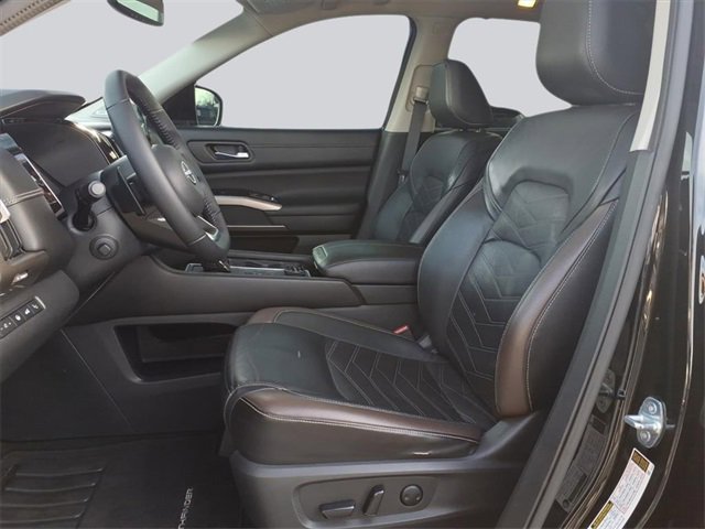 CARFAX One-Owner. Platinum Pathfinder Platinum, 4D Sport Utility, V6, 9-Speed Automatic, 4WD, Super Black, Charcoal Leather, 13 Speakers, 3rd row seats: bench, 4-Wheel Disc Brakes, ABS brakes, Air Conditioning, Alloy wheels, AM/FM radio: SiriusXM, Auto High-beam Headlights, Auto tilt-away steering wheel, Auto-dimming Rear-View mirror, Automatic temperature control, Axle Ratio: TBD, Bench Seat Carpeted Floor Mats (Set of 4), Black Splash Guards (Set of 4), Bodyside moldings, Bose Premium Audio System, Brake assist, Bumpers: body-color, Cargo Area Protector, Cargo Net, Cargo Package, Climate Controlled Front Bucket Seats, Delay-off headlights, Driver door bin, Driver vanity mirror, Dual front impact airbags, Dual front side impact airbags, Electronic Stability Control, Emergency communication system: NissanConnect Services, Exterior Parking Camera Rear, First Aid Kit, Four wheel independent suspension, Front anti-roll bar, Front Bucket Seats, Front Center Armrest, Front dual zone A/C, Front fog lights, Front reading lights, Fully automatic headlights, Garage door transmitter: HomeLink, Heads-Up Display, Heated door mirrors, Heated front seats, Heated rear seats, Heated steering wheel, Illuminated entry, Knee airbag, Leather steering wheel, Low tire pressure warning, Memory seat, Navigation system: NissanConnect Navigation, NissanConnect w/Navigation & Services, Occupant sensing airbag, Outside temperature display, Overhead airbag, Overhead console, Panic alarm, Passenger door bin, Passenger vanity mirror, Platinum Bench Seat Package, Power door mirrors, Power driver seat, Power Liftgate, Power moonroof, Power passenger seat, Power steering, Power windows, Radio data system, Radio: AM/FM Audio System, Rain sensing wipers, Rear air conditioning, Rear anti-roll bar, Rear reading lights, Rear side impact airbag, Rear window defroster, Rear window wiper, Reclining 3rd row seat, Remote keyless entry, Security system, Semi-Aniline Leather Seating Surfaces, Speed control, Speed-sensing steering, Speed-Sensitive Wipers, Split folding rear seat, Spoiler, Steering wheel memory, Steering wheel mounted audio controls, Tachometer, Telescoping steering wheel, TFT Meter Delete, Tilt steering wheel, Traction control, Trip computer, Turn signal indicator mirrors, Variably intermittent wipers, Ventilated front seats, Wheels: 20 Alloy w/Unique Finish. V6 4WD