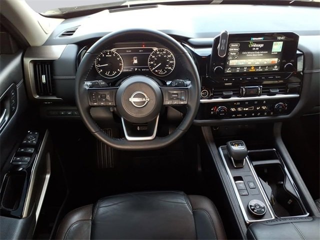Nissan Pathfinder SL. Purchased the car July 2021 when they first came out. I love everything about this car. I have not had any issues to date. Just went thru a snow storm with about 7inches of ice and snow. I am on a pretty steep hill and zero issues in the snow and ice. I really can't think of an issue i have with this car. I have taken this on 9 hour trip with a total of seven and had no issues in the mountains. - 5.0