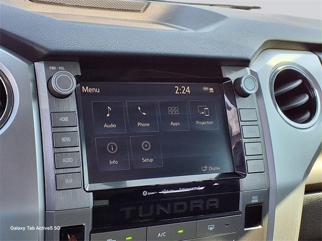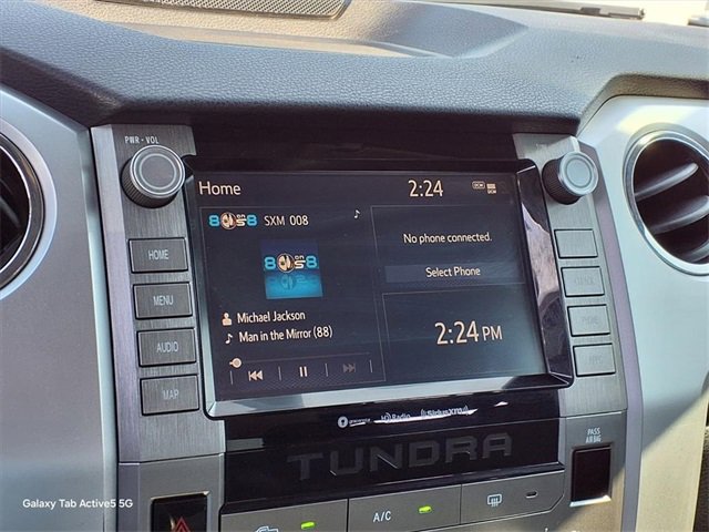 4D CrewMax, i-Force 5.7L V8 DOHC 32V LEV, 6-Speed Automatic Electronic, 4WD, Gray, 4-Wheel Disc Brakes, 4.30 Axle Ratio, ABS brakes, Air Conditioning, AM/FM radio: SiriusXM, Apple CarPlay/Android Auto, Auto High-beam Headlights, Auto-dimming Rear-View mirror, Brake assist, Compass, Delay-off headlights, Driver door bin, Driver vanity mirror, Dual front impact airbags, Dual front side impact airbags, Electronic Stability Control, Emergency communication system: Safety Connect with 1-year trial, Exterior Parking Camera Rear, Front anti-roll bar, Front Bucket Seats, Front fog lights, Front reading lights, Front wheel independent suspension, Fully automatic headlights, Garage door transmitter: HomeLink, Heated door mirrors, Illuminated entry, Knee airbag, Low tire pressure warning, Occupant sensing airbag, Outside temperature display, Overhead airbag, Overhead console, Panic alarm, Passenger door bin, Passenger vanity mirror, Power door mirrors, Power steering, Power windows, Radio data system, Rear reading lights, Rear seat center armrest, Rear step bumper, Rear window defroster, Remote Connect, Remote keyless entry, Safety Connect, Service Connect, SiriusXM Radio, Speed control, Speed-sensing steering, Split folding rear seat, Steering wheel mounted audio controls, Tachometer, Tilt steering wheel, Traction control, Trip computer, Variably intermittent wipers, Voltmeter. i-Force 5.7L V8 DOHC 32V LEV 4WD